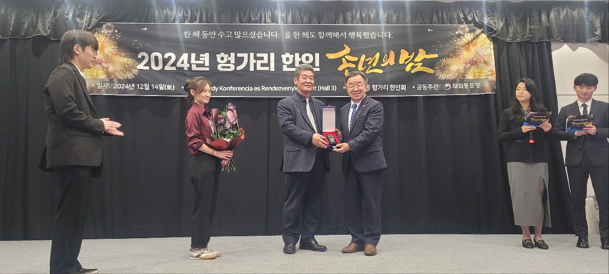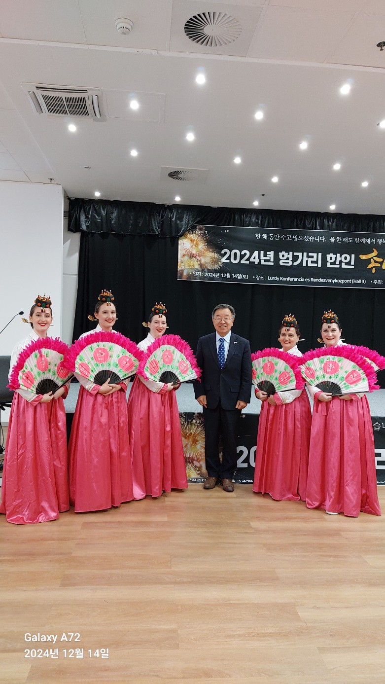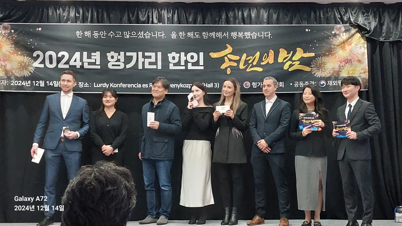 홍 대사는 12월 14일 한인회 송년회에 참가 축사를 했다. 지난 6월 창설한 한인회가 보여준 헌신과 각고의 노력에 감사드리고 국익증대와 교민보호를 위한 최귀선 회장과 모든 임직원들이 보여준 성과를 치하했다. 최 회장의 탁월한 리더십 하에 일사불란하게 단합된 모습을 보여준 부다페스트 한인회는 전 세계 한인회의 귀감이며 우리의 자랑이라 말했다. 홍 대사는 2025년에도 더욱 큰 성과를 기대하며 교민들 한분 한분에게 건강과 행운이 함께 하길 기원하며 신년 인사를 대신했다. 이날 한인회 송년 모임에는 400여 명이 참석했고 홍 대사에게 감사패를 증정했다.