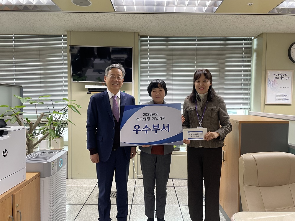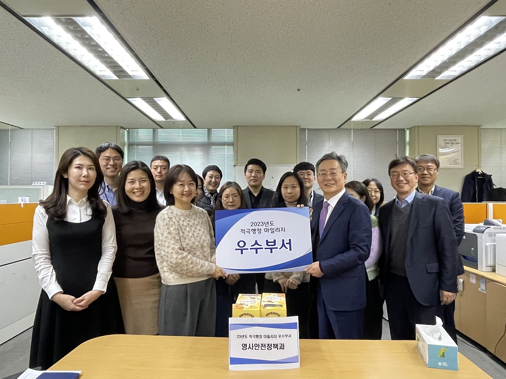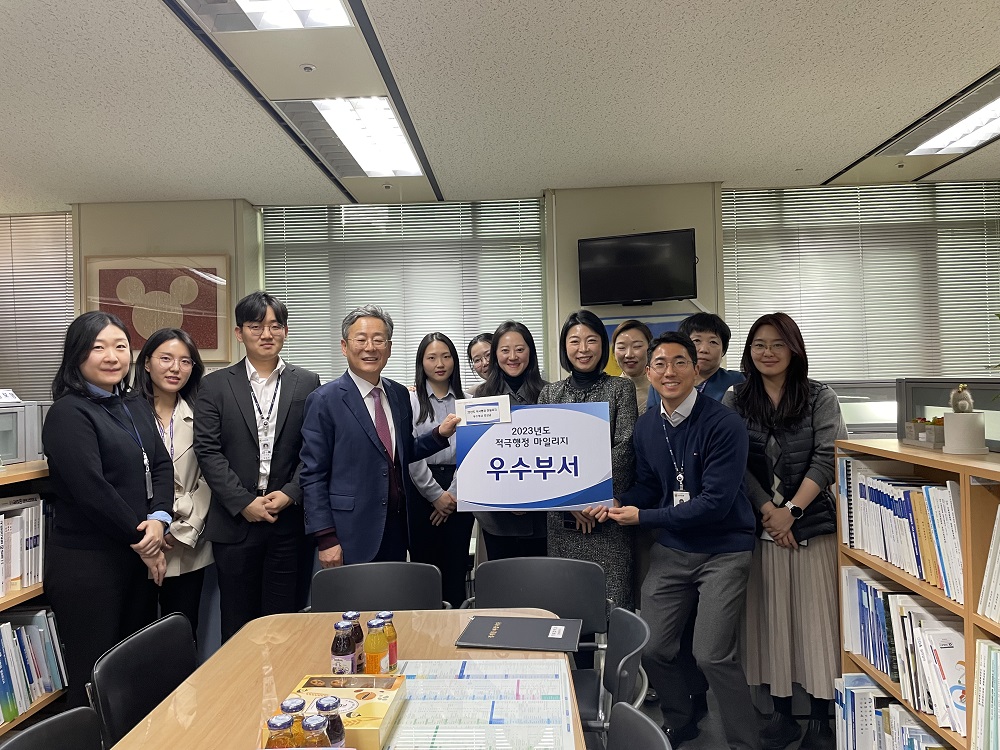 외교부는 2023년도 적극행정 마일리지 참여 우수부서(5개 과・팀), 우수직원(1명)을 선정하여, 2024.1.4.(목) 포상하였습니다.
